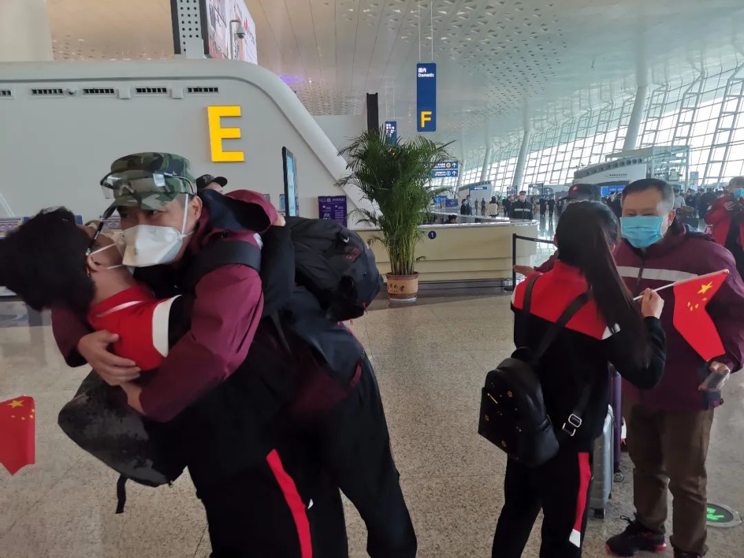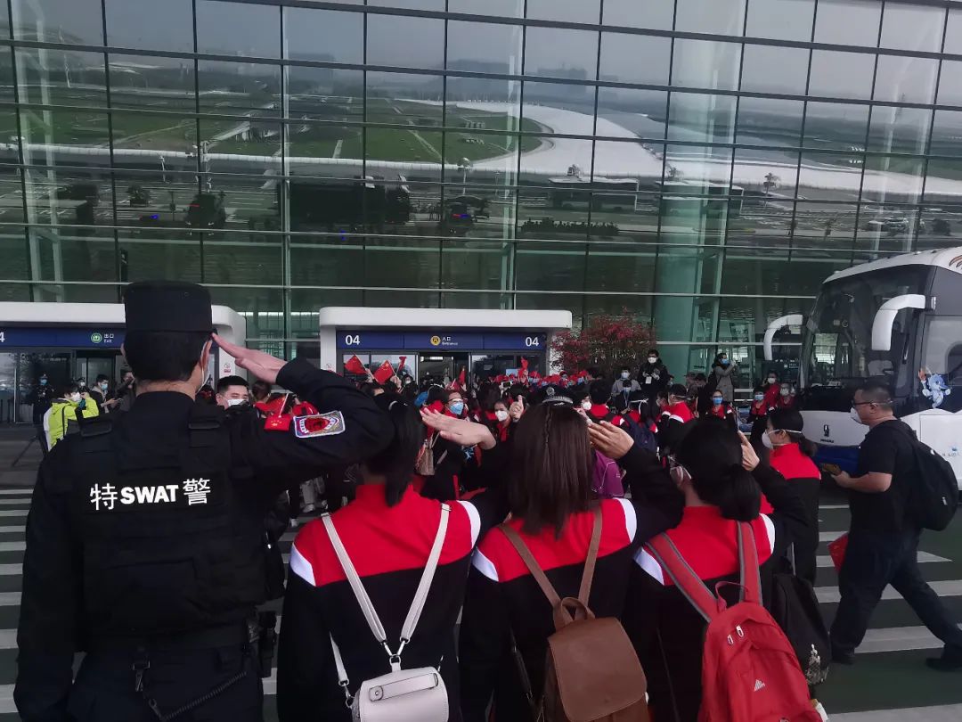 援漢醫(yī)療隊(duì)的機(jī)場(chǎng)惜別時(shí)刻