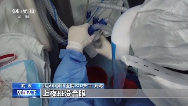武漢市肺科醫(yī)院ICU護士 劉鳴:上夜班沒合(過)眼就一直在旁邊守著看著。一個病人連著三四臺機子,有的是心電監(jiān)護的機子,上面有他的血氧飽和度,血壓、心率這些值,有些病人病情變化挺快的,本來血壓很好,然后突然一下血壓就降下來了,我們要及時去處理。