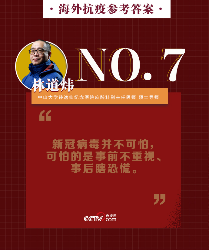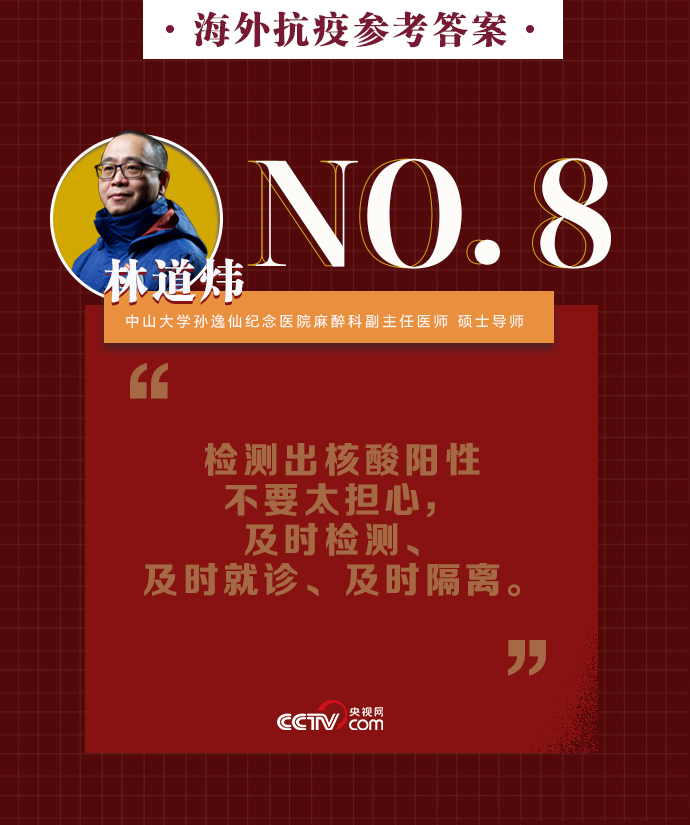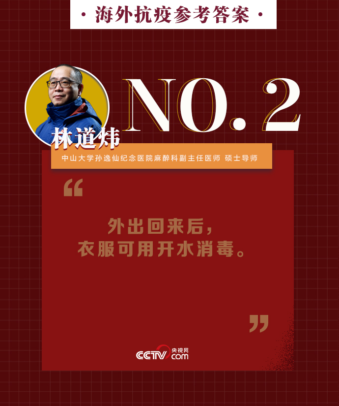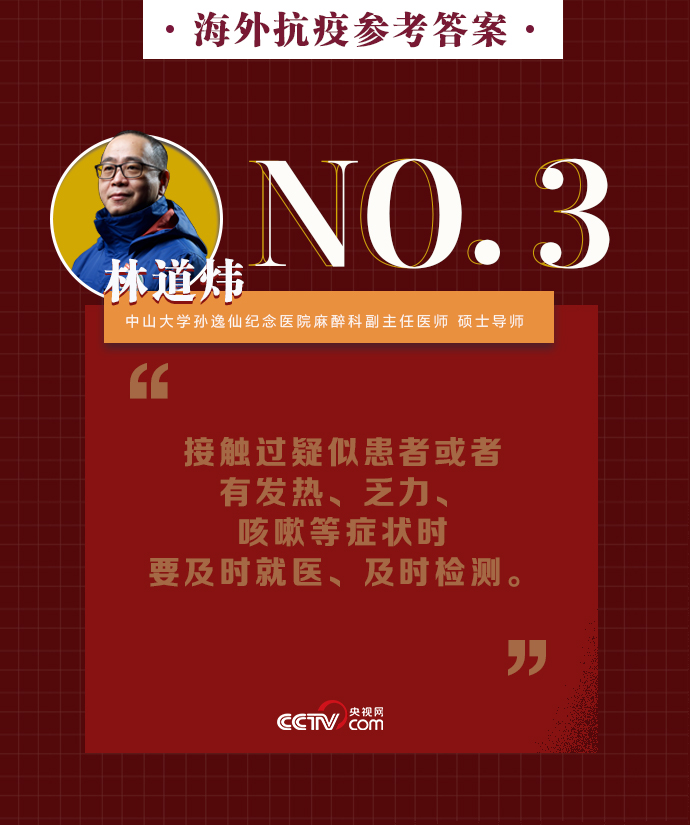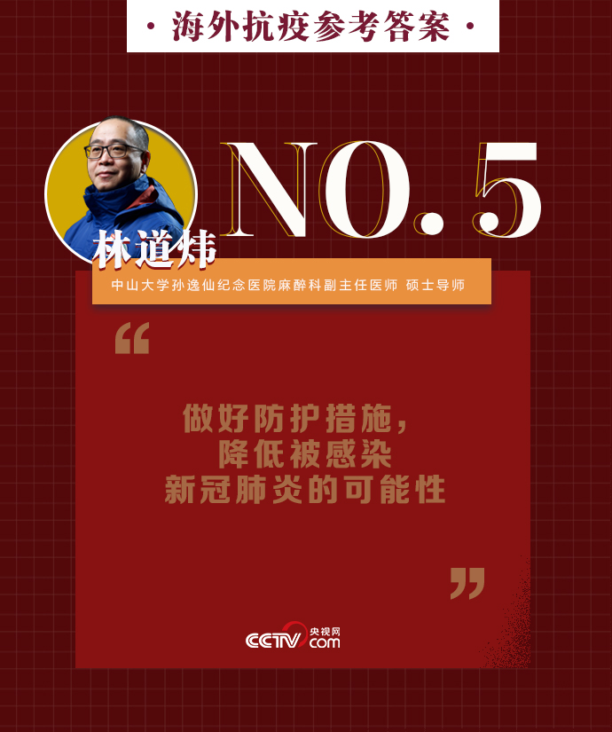 新冠肺炎疫情在全球持續(xù)暴發(fā),海外同胞如何做好基本防護、保證自身安全?出現(xiàn)焦慮緊張的負面情緒該如何緩解?中山大學孫逸仙紀念醫(yī)院麻醉科副主任醫(yī)師、碩士導師林道煒送上硬核攻略:戴口罩、注意手衛(wèi)生、減少與人接觸。做好這些,新冠病毒不可怕。