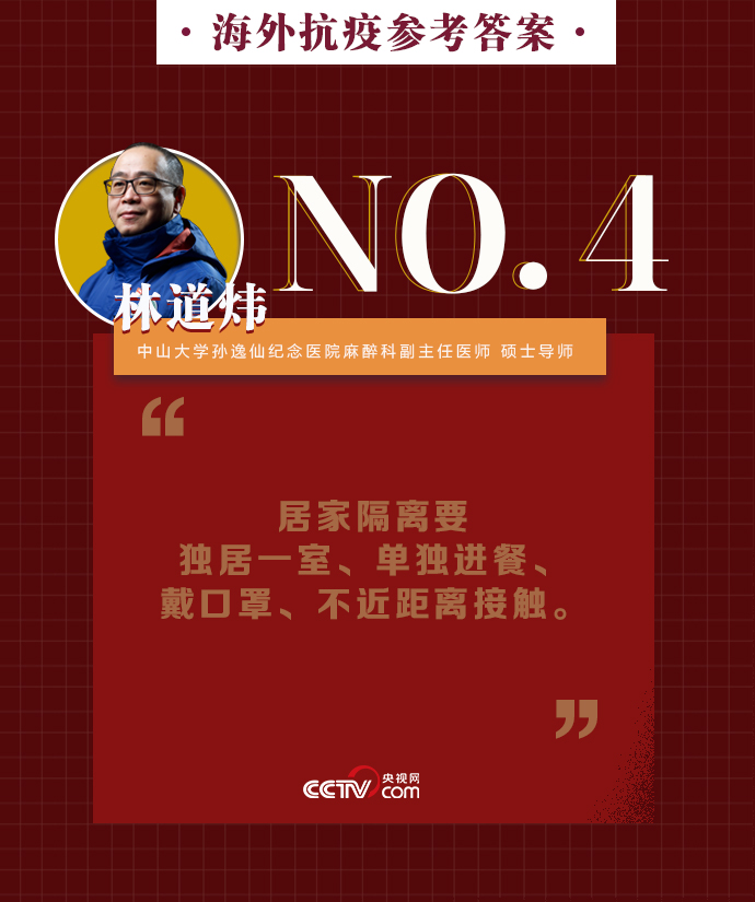 央視網(wǎng)消息:新冠肺炎疫情在全球持續(xù)暴發(fā),海外同胞如何做好基本防護、保證自身安全?出現(xiàn)焦慮緊張的負面情緒該如何緩解?中山大學孫逸仙紀念醫(yī)院麻醉科副主任醫(yī)師、碩士導師林道煒送上硬核攻略:戴口罩、注意手衛(wèi)生、減少與人接觸。做好這些,新冠病毒不可怕。