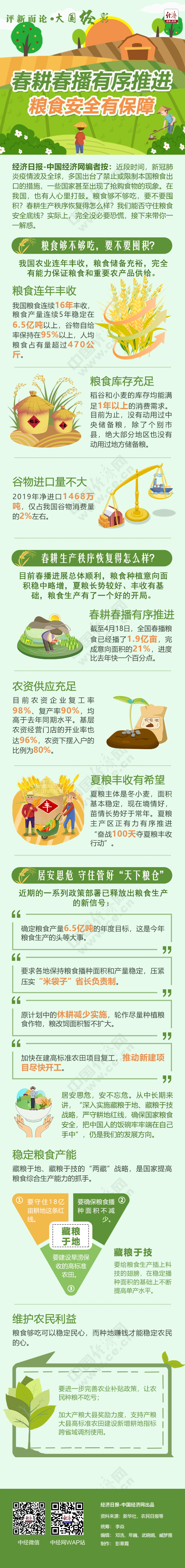 經(jīng)濟(jì)日?qǐng)?bào)-中國(guó)經(jīng)濟(jì)網(wǎng)編者按:近段時(shí)間,新冠肺炎疫情波及全球,多國(guó)出臺(tái)了禁止或限制本國(guó)糧食出口的措施,一些國(guó)家甚至出現(xiàn)了搶購(gòu)食物的現(xiàn)象。在我國(guó),也有人心里打鼓。糧食夠不夠吃,要不要囤積?春耕生產(chǎn)秩序恢復(fù)得怎么樣?我們能否守住糧食安全底線?實(shí)際上,完全沒(méi)必要恐慌,接下來(lái)帶你一一解惑。