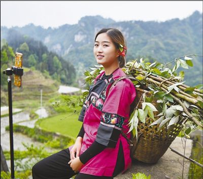 從小在十八洞村長大的施林嬌,對這里很熟悉,苗族的特色文化和日常生活都是她直播的靈感來源,做農(nóng)活、烹飪苗族特色菜、唱苗歌等都是她的直播內(nèi)容。他們希望能通過直播平臺幫助鄉(xiāng)親們的特色產(chǎn)品拓寬銷路。目前,他們在一家直播平臺已經(jīng)有了近5萬“粉絲”!盎氐郊亦l(xiāng)創(chuàng)業(yè),能為家鄉(xiāng)做點(diǎn)小小的貢獻(xiàn),我就實(shí)現(xiàn)了自己的人生價(jià)值!笔┝謰烧f。