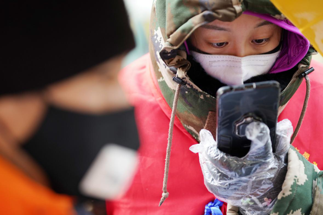 1993年出生的李文琦,是在深圳工作的哈爾濱人,春節(jié)返鄉(xiāng)回哈后成為社區(qū)志愿者。她說(shuō):“國(guó)家有難,我們‘90后’正值青年,身強(qiáng)力壯,應(yīng)該往前沖。”圖為李文琦(右)在檢查往來(lái)車(chē)輛人員的手續(xù)證明。新華社記者 王建威/攝