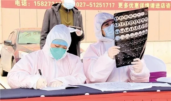 周靜(右)在社區(qū)開(kāi)展病情篩查工作。湖北日?qǐng)?bào)社供圖
