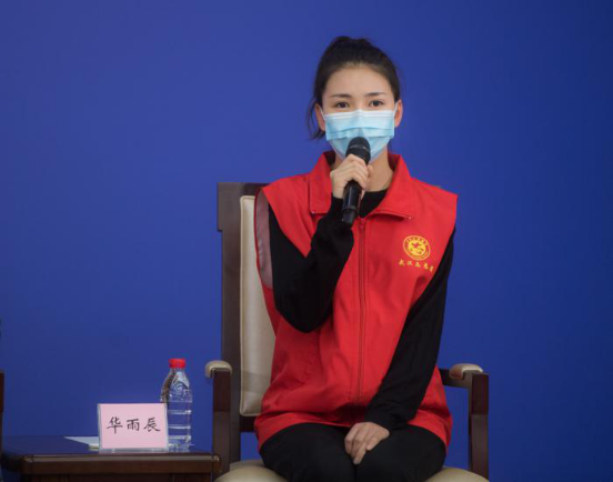 2020年2月23日,國(guó)務(wù)院新聞辦公室在湖北武漢舉行國(guó)務(wù)院新聞辦記者見(jiàn)面會(huì),邀請(qǐng)?jiān)谖錆h疫情防控一線(xiàn)的普通工作者講述他們團(tuán)結(jié)奮戰(zhàn)的故事,并回答記者提問(wèn)。圖為武漢市青山區(qū)鋼花小學(xué)音樂(lè)教師華雨辰在記者會(huì)上。新華社記者 肖藝九/攝