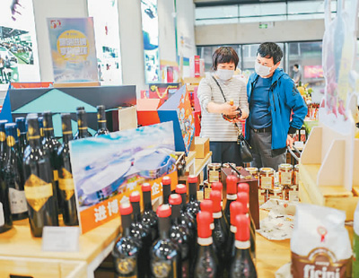“五一”假期,適逢上!拔逦遒徫锕(jié)”,虹橋品匯食品健康館同步推出了不少促銷活動,吸引了市民前來選購。圖為5月5日,市民在該館選購進口商品。