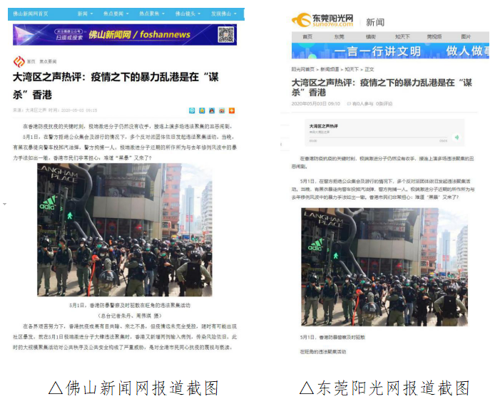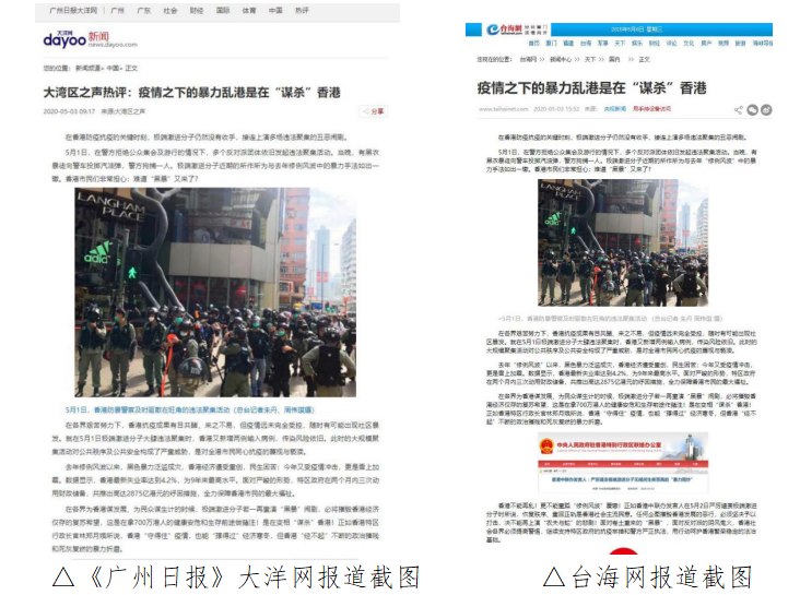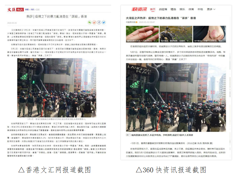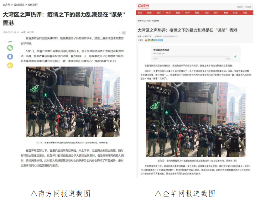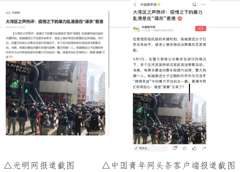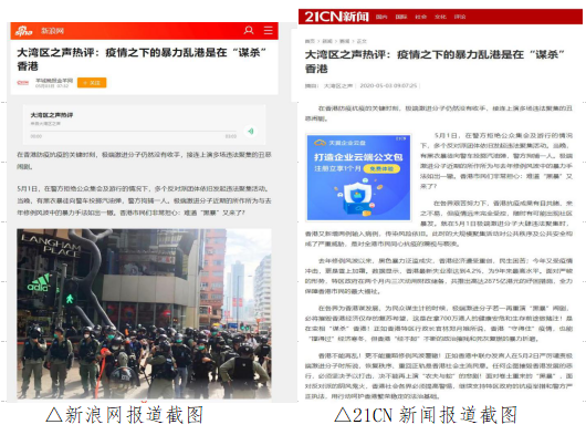 截至5月6日,中央媒體光明網(wǎng)、中國青年網(wǎng)頭條號,主要商業(yè)門戶網(wǎng)站新浪網(wǎng)、21CN等均在第一時間轉載這篇文章,支持香港特區(qū)政府的抗疫舉措和警方嚴正執(zhí)法,堅定維護香港繁榮穩(wěn)定的法治基礎。