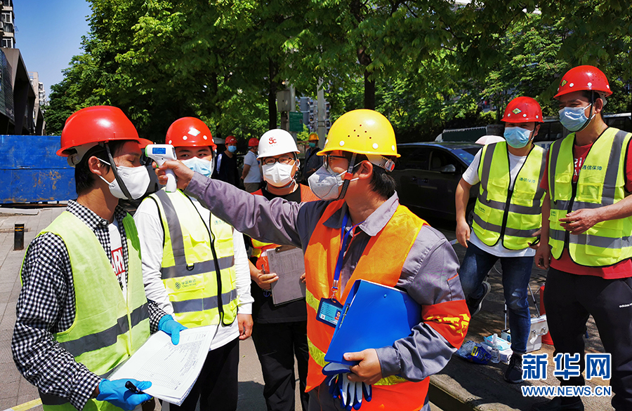 8日,在武漢市春雷建材市場(chǎng)附近的一處5G基站施工現(xiàn)場(chǎng),工人們經(jīng)過掃碼、測(cè)溫和全身消毒后進(jìn)入現(xiàn)場(chǎng)開始施工!啊逡弧¢L(zhǎng)假期間,我們都一直在施工!焙币苿(dòng)公司武漢江岸區(qū)建維中心5G項(xiàng)目經(jīng)理付毅說。為了減少人員聚集、抓好疫情防控和安全規(guī)范,施工現(xiàn)場(chǎng)還部署了“云監(jiān)控”視頻系統(tǒng)!皬氖┕と藛T開始準(zhǔn)備,一直到整個(gè)站點(diǎn)完工,全程進(jìn)行云上傳。后臺(tái)隨時(shí)監(jiān)控施工中有沒有違規(guī)操作,有沒有風(fēng)險(xiǎn)防范意識(shí)不達(dá)標(biāo)等行為!