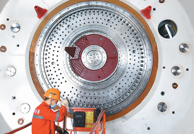 圖為3月18日,工人在位于河南省鄭州市的中鐵工程裝備集團(tuán)盾構(gòu)機(jī)總裝車間作業(yè)。
