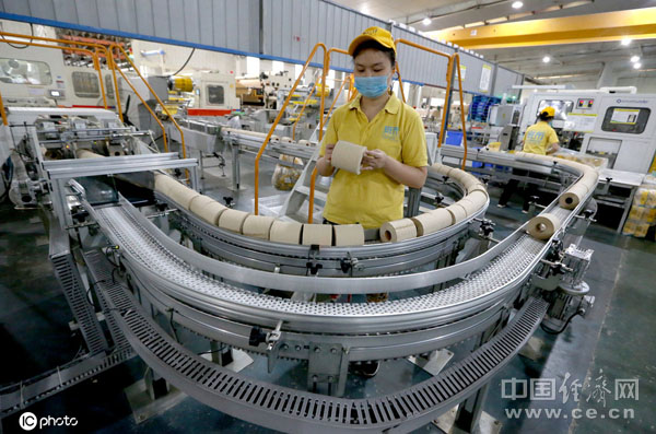 2019年9月17日,四川環(huán)龍新材料有限公司的工人們正在包裝生產(chǎn)“斑布”竹材料本色紙。近年來,四川省眉山市通過政策引導和資金扶持,加大對竹產(chǎn)業(yè)制造企業(yè)的技術改造。經(jīng)過技術改造和投入后,企業(yè)產(chǎn)能效益及市場競爭力大幅提升。