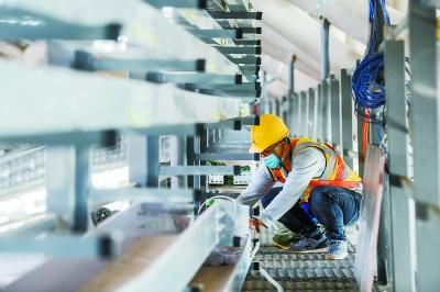 △工作人員正在距地面30余米高的馬道上進行機電安裝 (圖片來源:北京日報)
