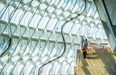 在國家游泳中心“水立方”里,建設(shè)者們在做好防護的同時,正按部就班地復(fù)工復(fù)產(chǎn),為冬奧會“水立方”變身“冰立方”全力以赴。