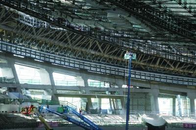 △今年是“冰絲帶”建設(shè)的關(guān)鍵時期,在去年底封頂封圍基礎(chǔ)上,工作人員正在緊張作業(yè)。(圖片來源:北京晚報)