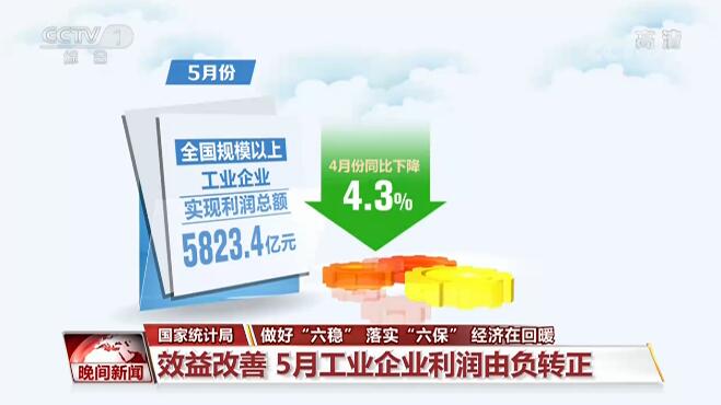 國家統(tǒng)計局:效益改善 5月工業(yè)企業(yè)利潤由負轉(zhuǎn)正