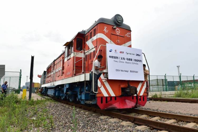 6月5日,開(kāi)往西班牙馬德里的 “義新歐”中歐班列防疫專列由浙江義烏西站出發(fā)。(新華社發(fā) 呂斌攝)