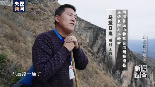 四川省涼山彝族自治州布拖縣烏依鄉(xiāng)阿布洛哈村駐村工作隊隊員 馬覺日鬼:下雨天也不好走,下雨天我們都不敢走,有時候要落石,對,那些落石它要落下來。我們有時候,下雨了我們都不敢走。只要路一通了,什么就都好了。