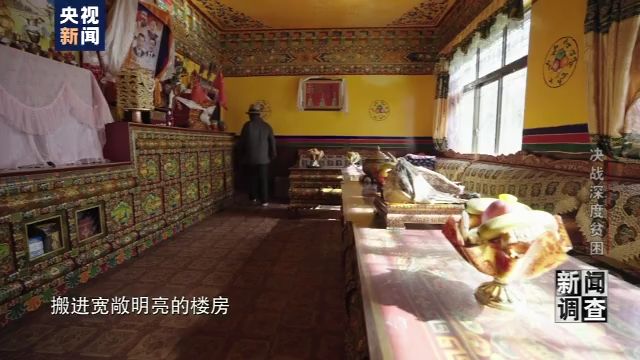 這一切,對于旺堆一家已成過去。在鋪滿陽光的家里,旺堆往柜子上擺放“德嘎”,這是一種傳統(tǒng)的藏式食物,把豐收的果實供放在案桌上,期盼新的一年里風調雨順,五谷豐登。旺堆原本是建檔立卡貧困戶,過去一家五口,家庭年收入只有3000元。2017年,旺堆一家通過易地搬遷扶貧,從山溝里破舊不堪的土坯房,搬進寬敞明亮的樓房。
