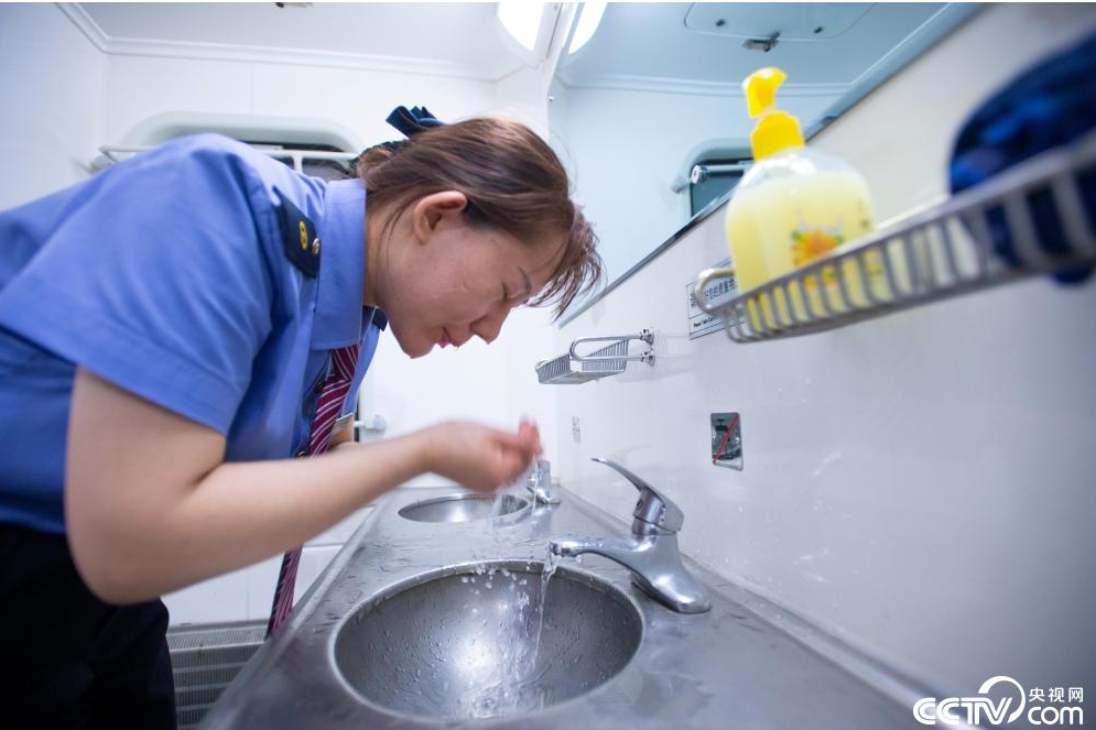 巡檢完畢,李卿茹才走到洗臉間,擰開水龍頭洗把臉,“與其說熱,倒不如說悶,因為完全沒有風(fēng)也沒有空調(diào),列車還在太陽下暴曬!崩钋淙阏f,雖然每次值守需要在這樣的環(huán)境下工作近8個小時,但是三年下來自己已經(jīng)完全習(xí)慣了。(賈翔)