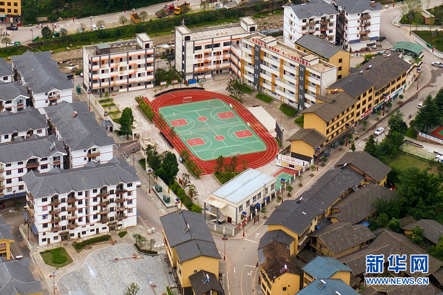 航拍中益小學(xué)的環(huán)形塑膠運(yùn)動(dòng)場(chǎng)。新華網(wǎng) 朱清 攝
