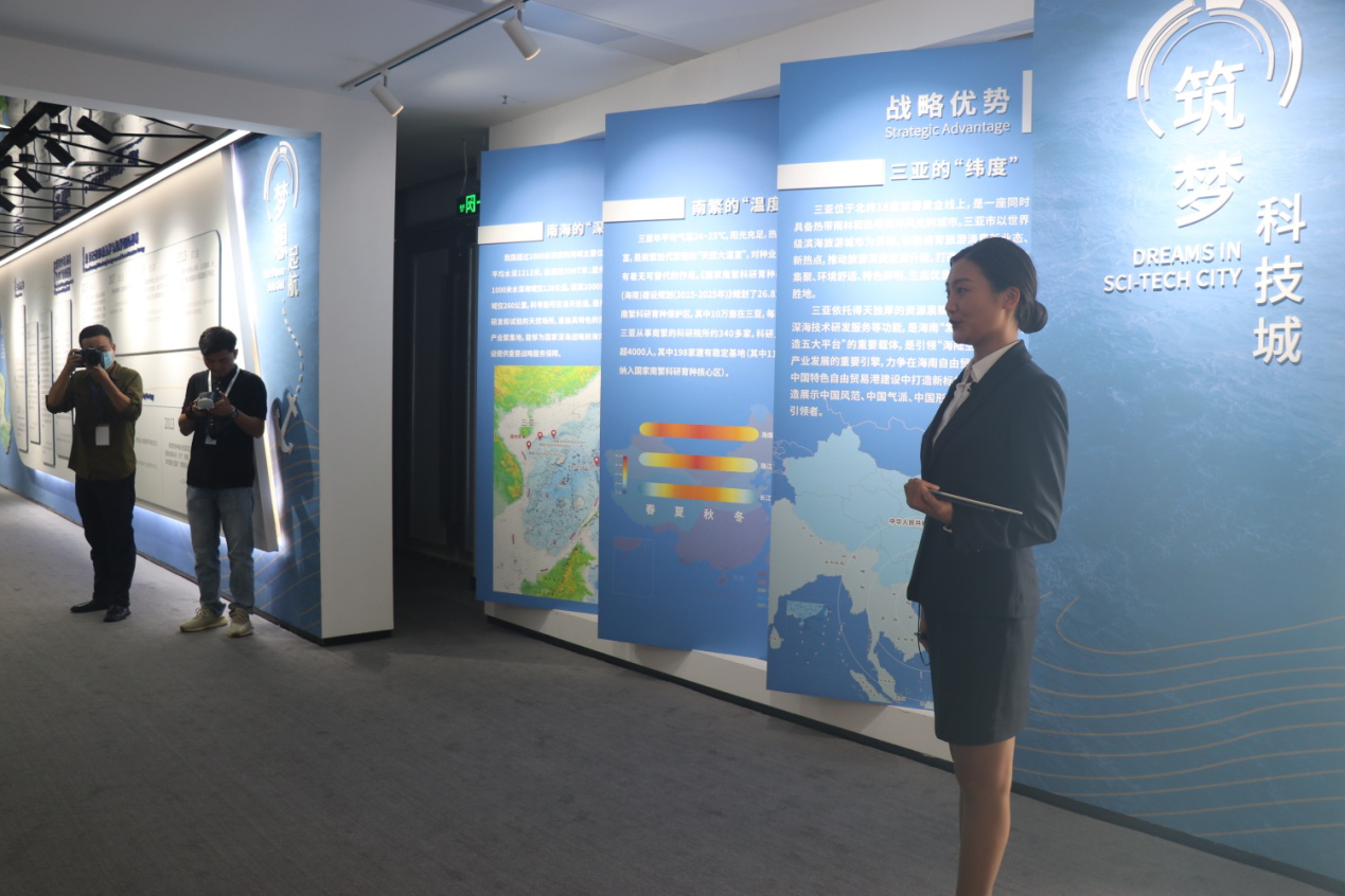 26日下午,采訪團走進三亞崖州灣科技城,參觀崖州灣科技城規(guī)劃展示中心和上海交通大學三亞崖州灣深海科技研究院,了解崖州灣科技城總體規(guī)劃情況,感受自貿港建設下海南重點園區(qū)的速度和溫度。