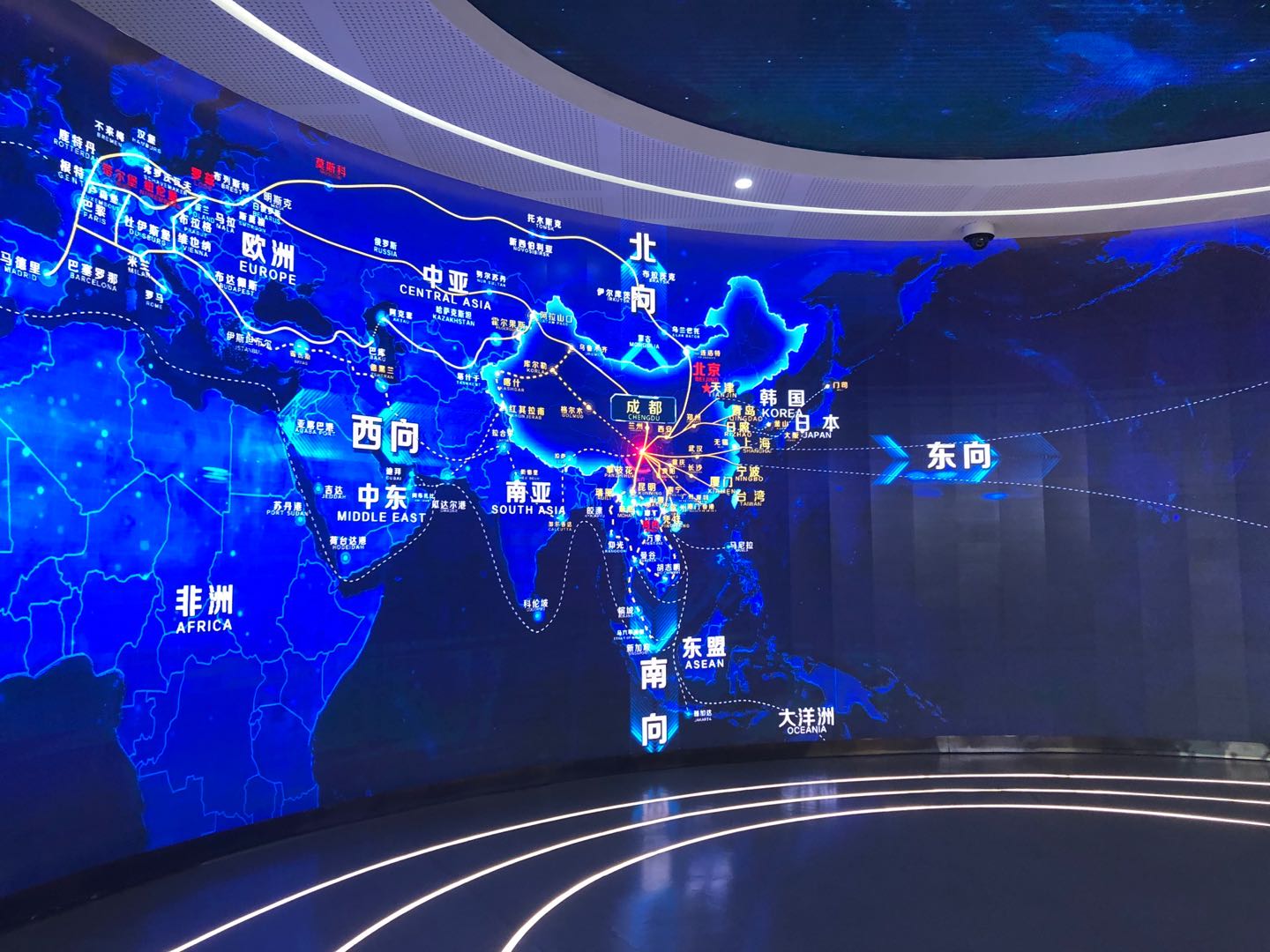 走進成都國際鐵路港展示中心,映入眼簾的藍色大屏幕展示了中歐班列(成都)連接的站點和詳細的線路。2013年4月,首班中歐班列(成都)從成都國際鐵路港始發(fā),經過7年耕耘,已聯(lián)接境外波蘭羅茲、德國紐倫堡、荷蘭蒂爾堡等30個城市,欽州、上海等境內15個城市,打造7條國際鐵路通道和5條國際鐵海聯(lián)運通道。