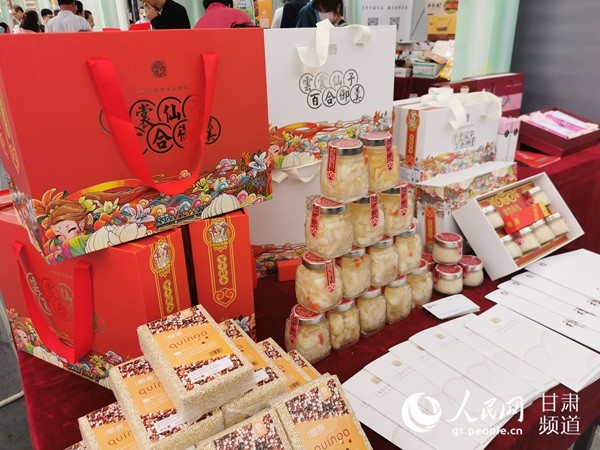 活動(dòng)現(xiàn)場(chǎng)展銷(xiāo)的產(chǎn)品。(來(lái)源:人民網(wǎng)甘肅頻道)