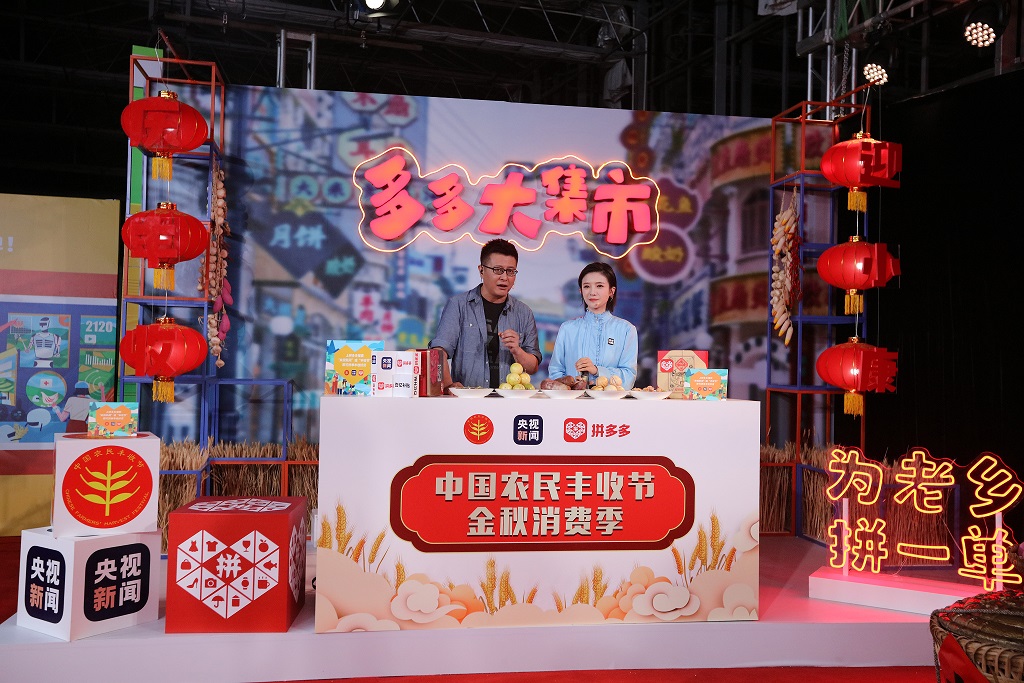 活動啟動儀式后,由中央廣播電視總臺新聞新媒體中心、農(nóng)業(yè)農(nóng)村節(jié)目中心共同組織的“金秋消費季”首場直播帶貨活動——“慶豐收 為老鄉(xiāng)拼一單”直播特別節(jié)目順利舉行。央視多名主持人、地方市縣負責人及來自全國東西南北中五大區(qū)域的“三農(nóng)”人物通過“央視新聞”“央視三農(nóng)”融媒體矩陣,帶領(lǐng)廣大網(wǎng)民看豐收中華大地,品優(yōu)質(zhì)農(nóng)產(chǎn)品。消費者通過拼多多平臺領(lǐng)取豐收券,購買豐收節(jié)專區(qū)相關(guān)補貼農(nóng)副產(chǎn)品。9月至11月,中央廣播電視總臺聯(lián)合農(nóng)業(yè)農(nóng)村部、中華全國供銷合作總社還將開展12場“金秋消費季”系列直播活動。