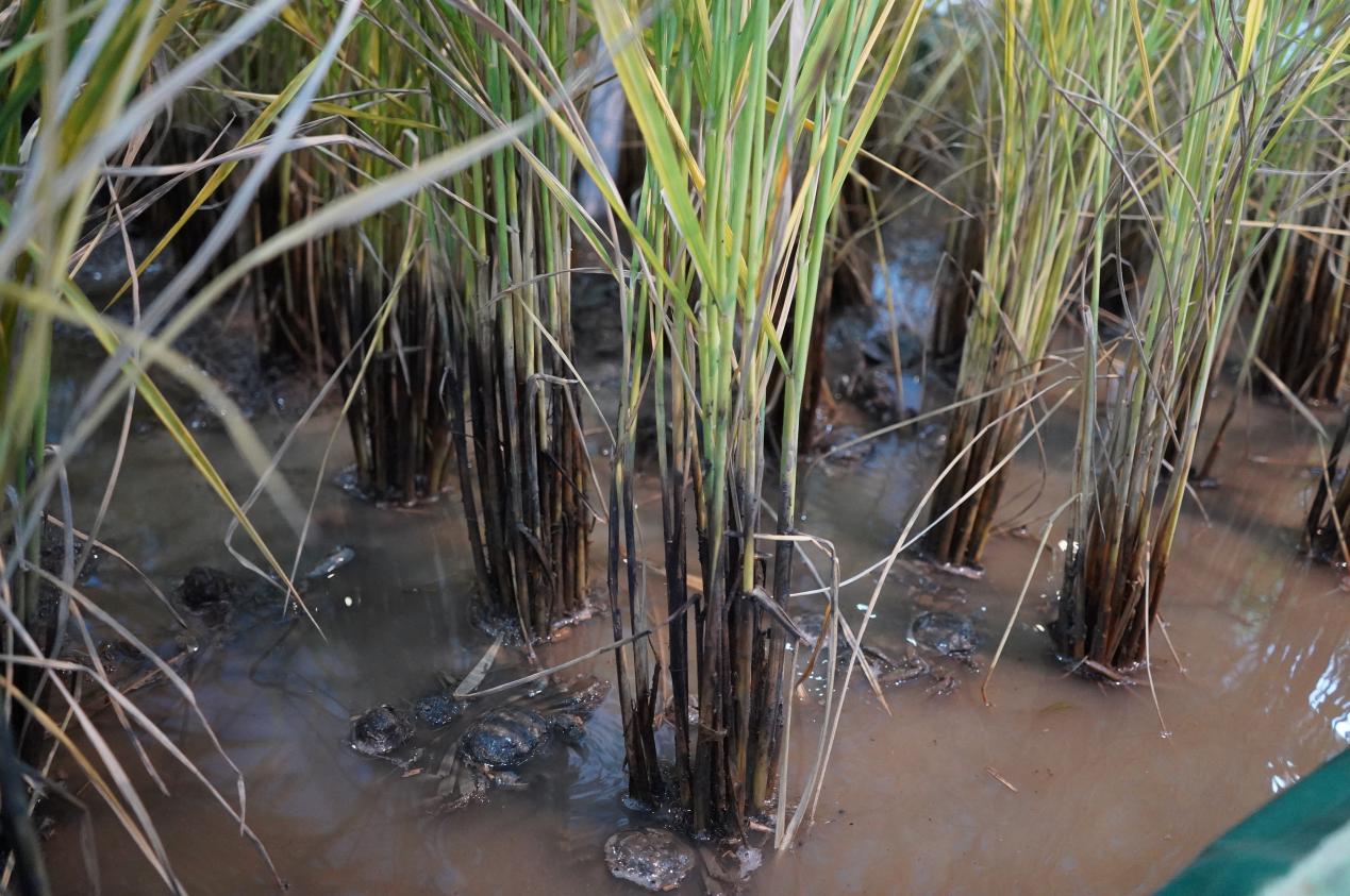 作為“中國生態(tài)稻米之鄉(xiāng)”“中國河蟹第一市”,“稻田養(yǎng)蟹”已成為盤錦的城市名片之一。所謂稻蟹共生模式,指“用地不占地,用水不占水”和“一地兩用,一水兩養(yǎng),一季雙收”,河蟹在對稻田環(huán)境起到“監(jiān)控作用”的同時,還能清除稻田雜草,預防水稻病蟲害,其糞便還能為水稻提供有機肥料。稻蟹共生形成一條完整的生物鏈,不僅提高了資源利用率,增加了農(nóng)民收入,而且生態(tài)環(huán)境得到了改善,也為生產(chǎn)優(yōu)質(zhì)生態(tài)稻米提供了良好的條件。