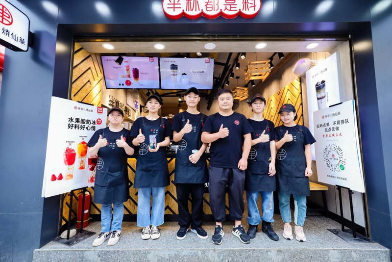 晴隆縣商戶“書亦燒仙草”的店主及店員(央廣網(wǎng)發(fā) 美團(tuán)供圖)