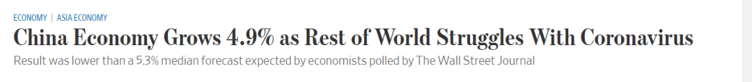 美國(guó)《華爾街日?qǐng)?bào)》的報(bào)道重點(diǎn)關(guān)注了中國(guó)經(jīng)濟(jì)復(fù)蘇的進(jìn)程。題為《世界其他國(guó)家掙扎應(yīng)對(duì)新冠病毒,中國(guó)經(jīng)濟(jì)增長(zhǎng)4.9%》的報(bào)道把2020年的中國(guó)經(jīng)濟(jì)分為三個(gè)階段: