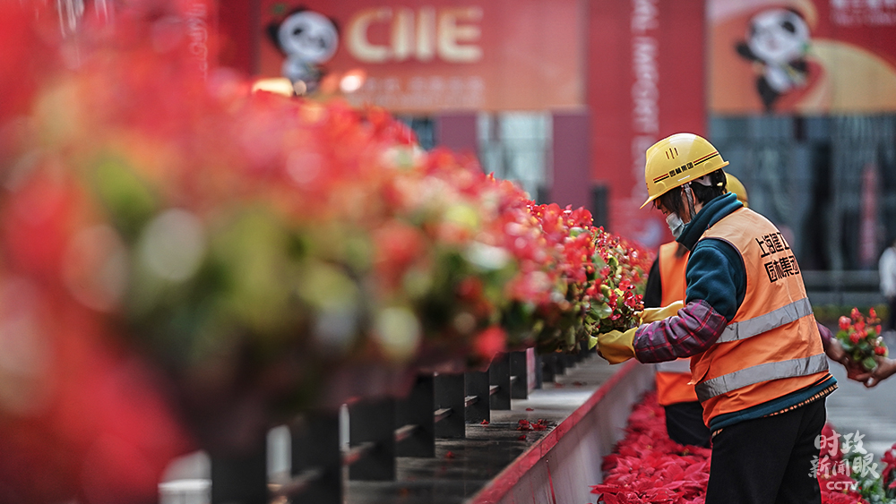 △進(jìn)博會(huì)開(kāi)幕前,工作人員做最后的整理、布展等工作。(總臺(tái)國(guó)廣記者李晉拍攝)