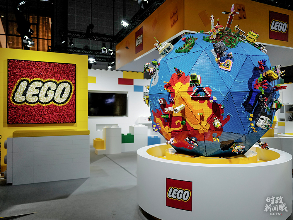△這是進(jìn)博會(huì)消費(fèi)品展區(qū)的“樂(lè)造星球”展品,高2.7米(含底座),共包含62750塊樂(lè)高積木顆粒,顆?傊亓窟_(dá)106千克。(總臺(tái)國(guó)廣記者李晉拍攝)