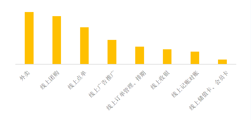 數(shù)字時代為小店發(fā)展提供了獲客、營銷等多元化營收增長動力。問卷調(diào)查顯示,小店對美團(tuán)平臺最滿意的前5項數(shù)字化服務(wù)分別為外賣、線上團(tuán)購、線上點單、線上推廣以及線上訂單管理,主要集中在獲客與營銷兩個領(lǐng)域。