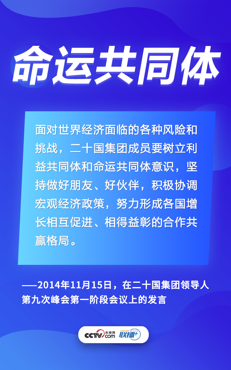 二十國集團是國際經(jīng)濟合作主要論壇。多年來,習(xí)近平主席在峰會講話中倡議各國聯(lián)手,齊心協(xié)力應(yīng)對世界經(jīng)濟和全球治理的各種問題。央視網(wǎng)《聯(lián)播+》梳理習(xí)主席相關(guān)論述,與您一起學(xué)習(xí)體會。