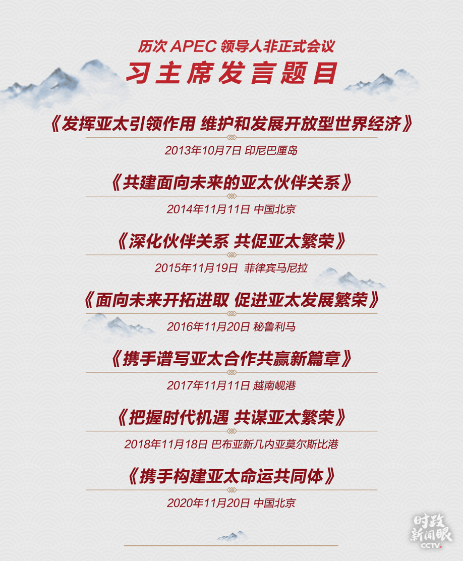 11月20日晚,習(xí)近平主席以視頻方式出席了APEC第27次領(lǐng)導(dǎo)人非正式會(huì)議。這是一次繼往開來(lái)的重要會(huì)議。習(xí)主席在發(fā)言時(shí)說(shuō),今年,亞太經(jīng)合組織的一項(xiàng)重要任務(wù)是開啟2020年后的合作愿景。