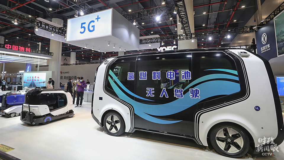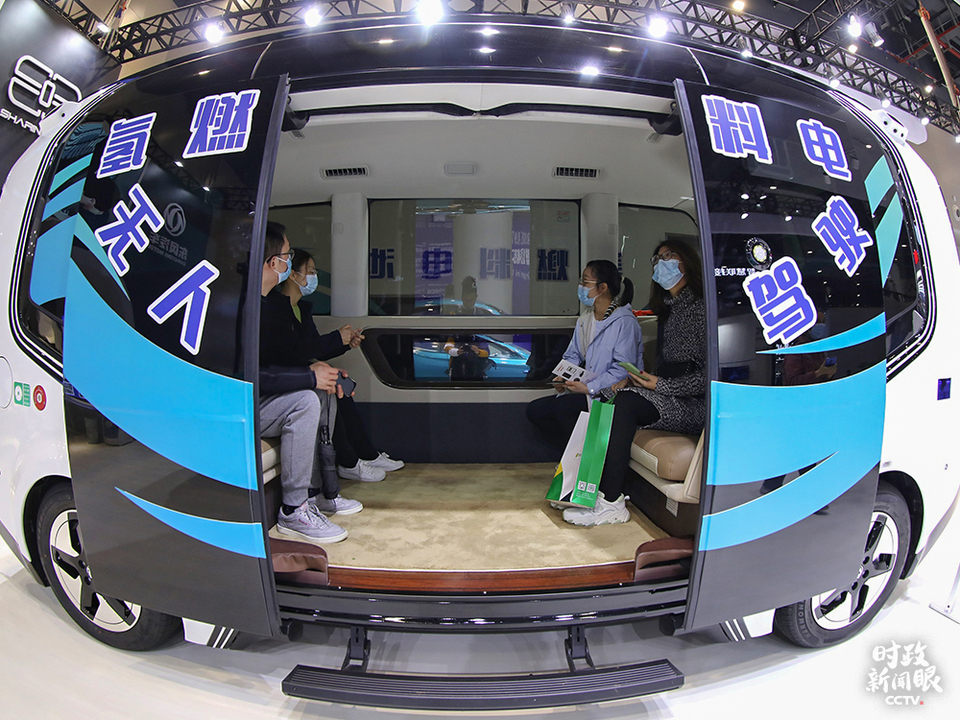 △2020中國(guó)5G+工業(yè)互聯(lián)網(wǎng)大會(huì)20日在湖北武漢開幕,這輛氫燃料電池版無(wú)人駕駛巴士是近期“網(wǎng)紅”。