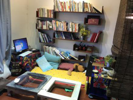 火爐、書架、木質(zhì)屏風(fēng)、吊起的油紙傘......何葉珂恩的直播房間不足10平米,都是按照自己的想法設(shè)計。