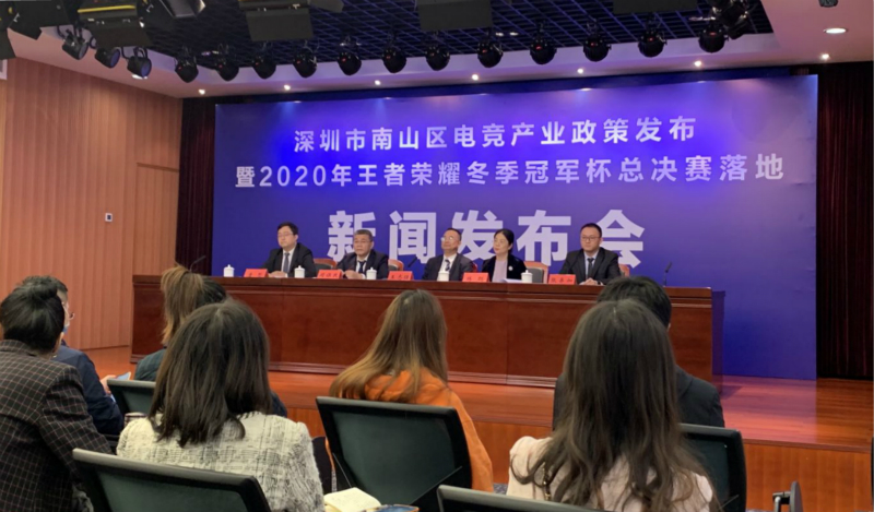央廣網(wǎng)深圳12月29日消息(記者黃倩)深圳市南山區(qū)電競產(chǎn)業(yè)政策發(fā)布暨2020王者榮耀冬季冠軍杯總決賽落地新聞發(fā)布會29日在深圳市政府新聞發(fā)布廳舉行,來自深圳市文化廣電旅游體育局、南山區(qū)政府、南山區(qū)文化廣電旅游體育局等單位相關負責人就深圳電競產(chǎn)業(yè)發(fā)展情況做介紹,并對外發(fā)布《深圳市南山區(qū)關于支持電競產(chǎn)業(yè)發(fā)展的實施意見》《深圳市南山區(qū)關于支持電競產(chǎn)業(yè)發(fā)展的若干措施》(以下簡稱《實施意見》《若干措施》),同時宣布2020王者榮耀冬季冠軍杯總決賽落地南山。