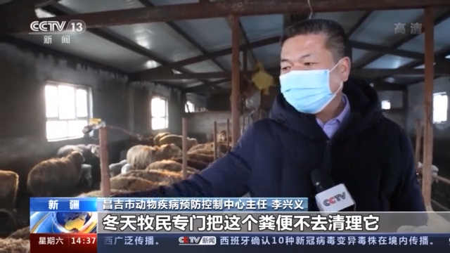 昌吉市動物疾病預防控制中心主任 李興義:冬天牧民專門把這個糞便不去清理它,厚厚的這一層糞便,發(fā)酵以后它產(chǎn)生一定熱量,羊在這個糞便上,就像溫床一樣的,起個保暖作用。