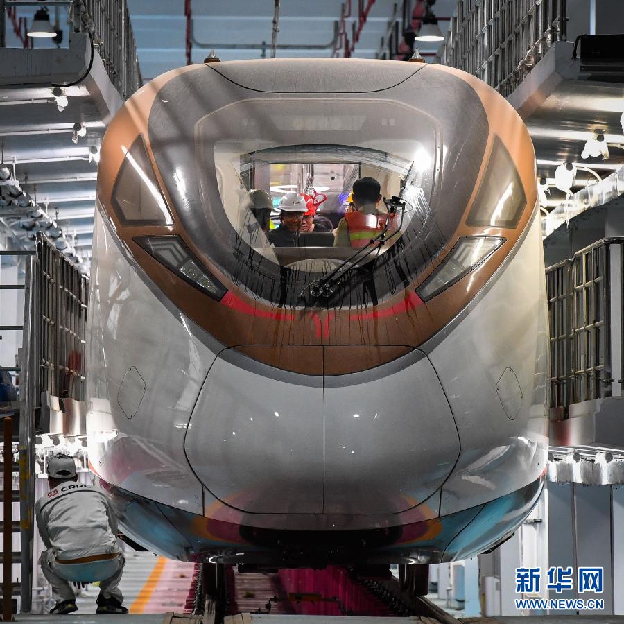 參加熱滑試驗的技術人員對廣州地鐵18號線時速160公里電客車進行發(fā)車前最后一次設備狀況查驗(3月3日攝)。新華社記者 劉大偉 攝