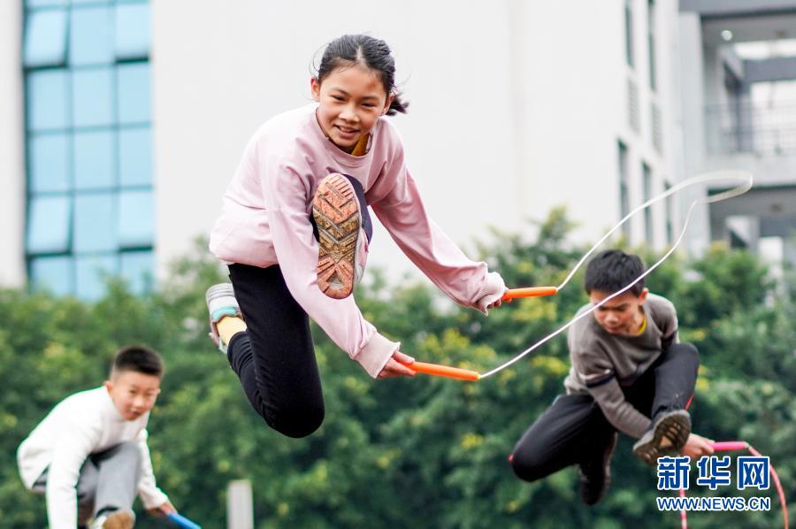 2020年12月9日,重慶市九龍坡區(qū)西彭鎮(zhèn)第一小學校跳繩隊隊員在進行花樣跳繩訓練。該校從1999年開始引進跳繩,開展特色體育活動。新華社記者 劉潺 攝