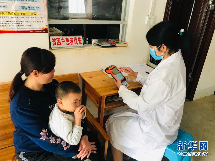 廣西樂業(yè)縣新化鎮(zhèn)百坭村群眾通過“村醫(yī)通”系統(tǒng)現(xiàn)場進行醫(yī)療費用結算(2020年2月12日攝)。新華社發(fā)(廣西壯族自治區(qū)醫(yī)療保障局供圖)