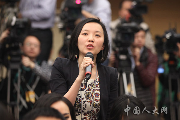 3月11日上午,十二屆全國人大二次會議在梅地亞中心舉行記者會,中國人民銀行行長周小川等五位嘉賓就“金融改革與發(fā)展”的相關(guān)問題回答中外記者的提問。圖為中國證券報(bào)、中證網(wǎng)記者提問。羅榮 攝