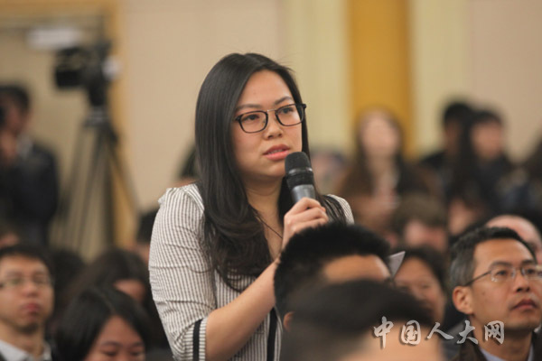 3月11日上午,十二屆全國人大二次會(huì)議在梅地亞中心舉行記者會(huì),中國人民銀行行長周小川等五位嘉賓就“金融改革與發(fā)展”的相關(guān)問題回答中外記者的提問。圖為中央人民廣播電臺(tái)、央廣網(wǎng)記者提問。羅榮 攝