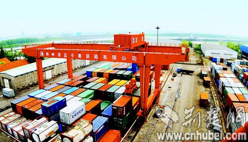 這是荊州唯一的對外開放口岸和集裝箱專用港區(qū)。“目前已完成6.1萬標(biāo)箱的吞吐量,同比增長28.7%。今年目標(biāo)是沖10萬標(biāo)箱!鼻G州港務(wù)集團(tuán)董事長范禮建說。