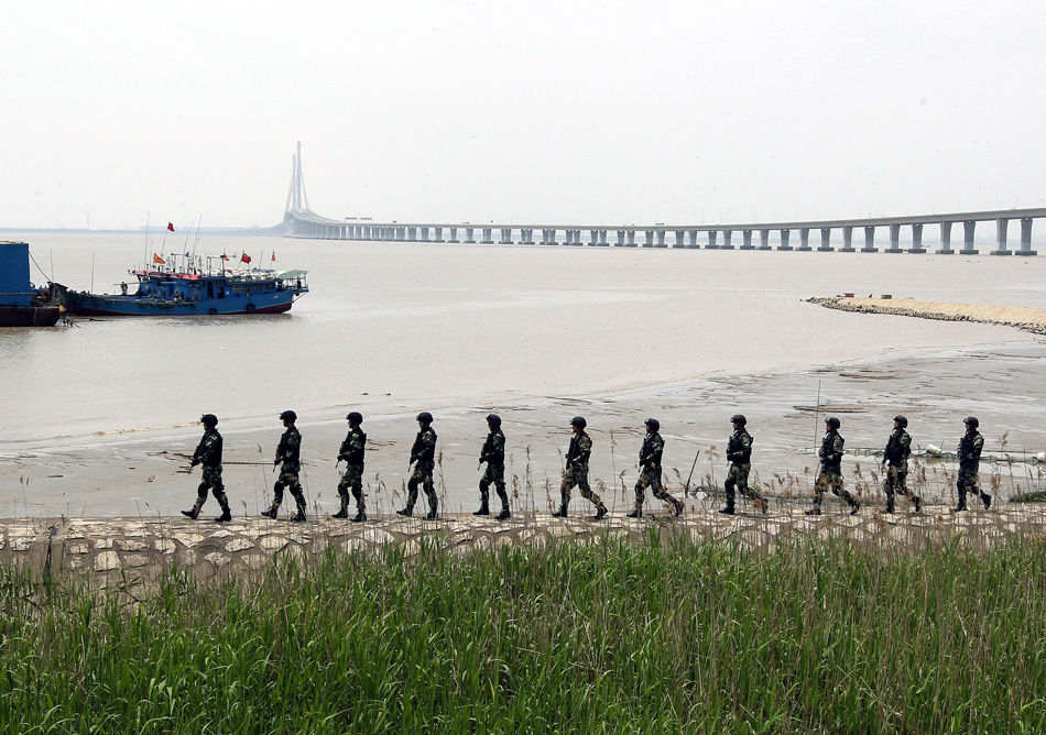 5月15日,武警官兵在上海長(zhǎng)江水域武裝巡邏。亞信峰會(huì)臨近,擔(dān)負(fù)上海長(zhǎng)江隧橋和重要隧道警戒任務(wù)的武警上?傟(duì)四支隊(duì)全面進(jìn)入“峰會(huì)時(shí)間”,時(shí)刻保持箭在弦上,確保警衛(wèi)目標(biāo)萬無一失。