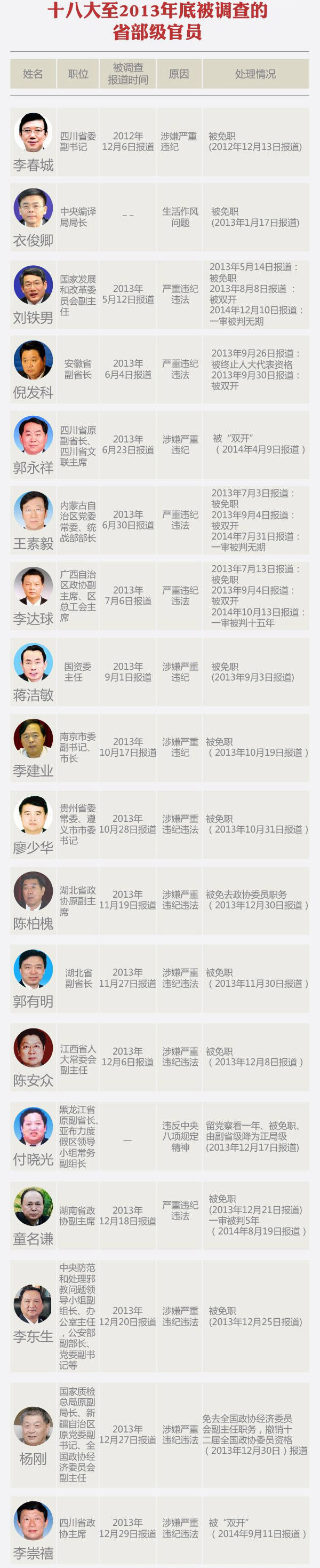 十八大后一年落馬省部級(jí)官員