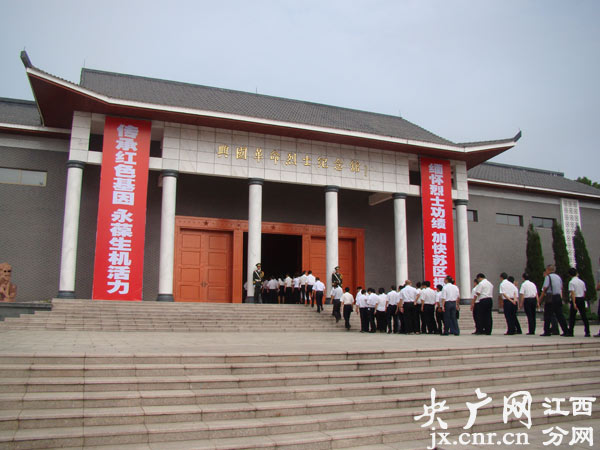 興國(guó)是著名的紅軍縣、烈士縣、將軍縣和蘇區(qū)模范縣。蘇區(qū)時(shí)期,全縣23萬(wàn)人,參軍參戰(zhàn)的有9.3萬(wàn)余人,孕育出56位共和國(guó)開(kāi)國(guó)將軍,犧牲的烈士共5萬(wàn)多名,有姓名可考的23179名,其中犧牲在長(zhǎng)征路上的12038人,幾乎每一公里就有一名興國(guó)籍官兵倒下,真可謂“萬(wàn)里長(zhǎng)征路,里里興國(guó)魂”。興國(guó)烈士人數(shù)占贛南烈士總數(shù)的1/5,江西烈士總數(shù)的1/10,全國(guó)烈士總數(shù)的1/60,居全國(guó)各縣之首,被稱為“中華烈士第一縣”。