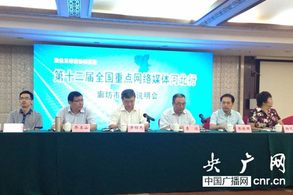 央廣網(wǎng)廊坊8月13日消息(記者高夢(mèng)蝶)13日上午,“聚焦京津冀協(xié)同發(fā)展”第十二屆全國(guó)重點(diǎn)網(wǎng)絡(luò)媒體河北行廊坊說明會(huì)啟動(dòng)。來自全國(guó)各地的重點(diǎn)網(wǎng)絡(luò)媒體代表、網(wǎng)信辦領(lǐng)導(dǎo)和廊坊市委領(lǐng)導(dǎo)出席此次會(huì)議。