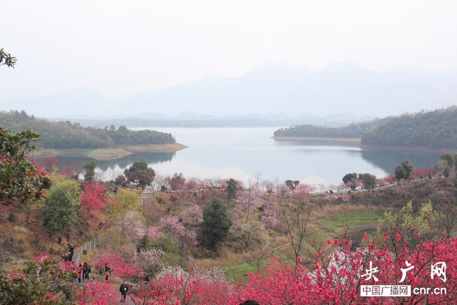 武寧花源谷景區(qū)桃花島上桃花盛開(kāi)(央廣網(wǎng)記者 劉千里 攝)